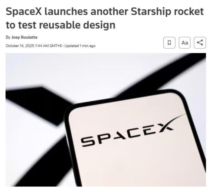 據路透社報道,當地時間13日,美國太空探索技術公司(SpaceX)新一代重型運載火箭“星艦”從得克薩斯州發射升空,實施第11次試飛。