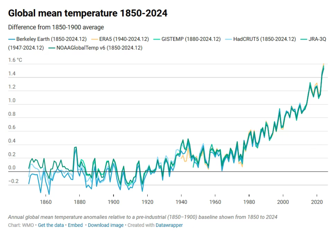 2025年3月19日,世界氣象組織(WMO)發布了《全球年度至十年氣候更新(2025-2029)》報告,預測未來五年全球氣溫預計將繼續處于或接近創紀錄水平。人們必須意識到,平均氣溫每上升0.1℃都會增加社會系統性風險,增加大量的社會成本。