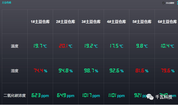 上圖是上海某知名食品企業六個土豆倉庫的物聯網監控數據,從平臺上可以實時看到倉庫內的溫度、濕度、二氧化碳濃度。