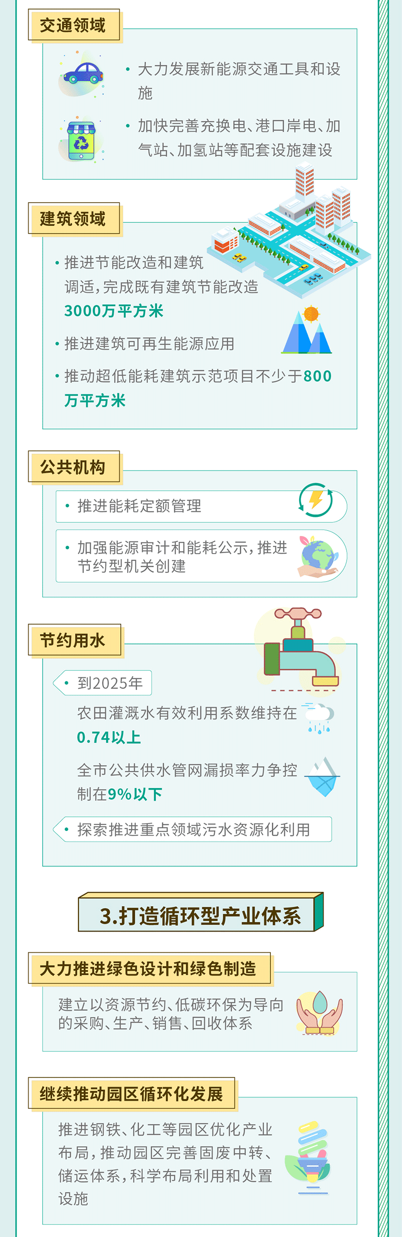 《規(guī)劃》提出,到2025年,單位生產(chǎn)總值能源消耗下降14%;非化石能源占能源消費總量比重力爭達到20%左右;全社會主要資源產(chǎn)出率提高20%左右,主要廢棄物循環(huán)利用率達到92%左右。一起來看圖解↓