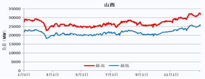 可以看出,山西的用電量是非常大的,工作日用電負荷量較節假日同比增長約20%,起伏較小,這是因為山西重工業產業比較多,24小時不間斷生產,所以每個時間段用電量也沒有太大起伏 |