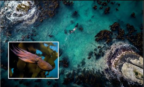(來自《我的章魚老師》,背景為從開普敦向北延伸到納米比亞海岸線的一片巨大的竹海帶(bamboo kelp)。 圖源:Netflix)
