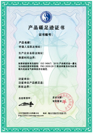 產品碳足跡證書樣例