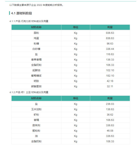 涉及產品生命周期階段的材料用量、活動數據、等。數據來源為產品BOM表、生產報表等,對于無法實際測量的數據,應根據行業標準或規范采用合理的方法估算。