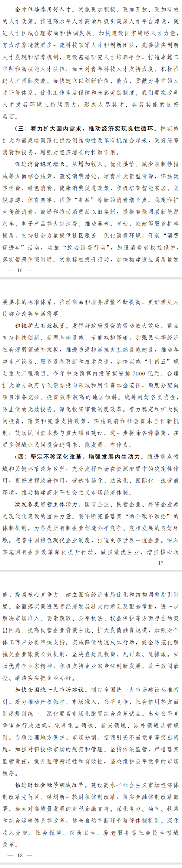 ——積極擴大有效投資。重點支持科技創新、新型基礎設施、節能減排降碳,加強民生等經濟社會薄弱領域補短板。