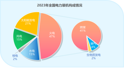 2023年全國電力裝機構成情況
