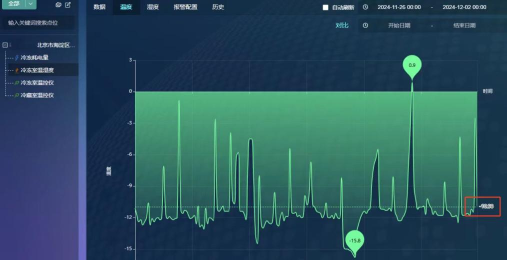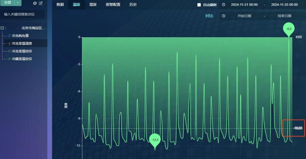 對于冷庫來說,環境溫濕度既決定生鮮品質,又影響能耗和設備壽命。因此,千瓦首先在冷庫安裝溫濕度傳感器,實時監測冷庫內各個角落的溫濕度變化,有效規避了溫控儀庫溫采集單一位置的局限性,讓溫度控制更加精準全面。