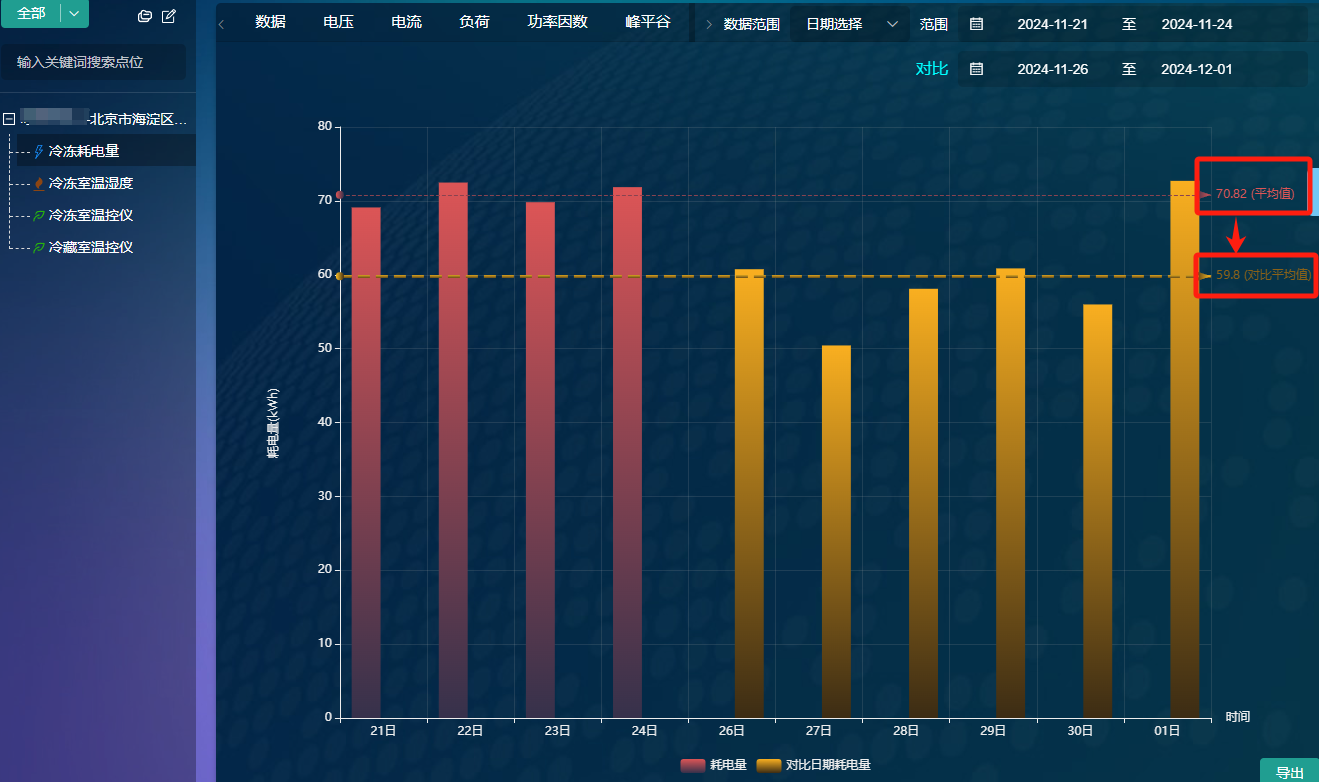冷凍室空調耗電對于實現高效能源管理至關重要。通過安裝智能電表,平臺監測冷凍室空調的耗電情況。基于此,制定科學合理的運行策略,平臺可自動調整空調制冷模式、啟停時間等,節約能耗。