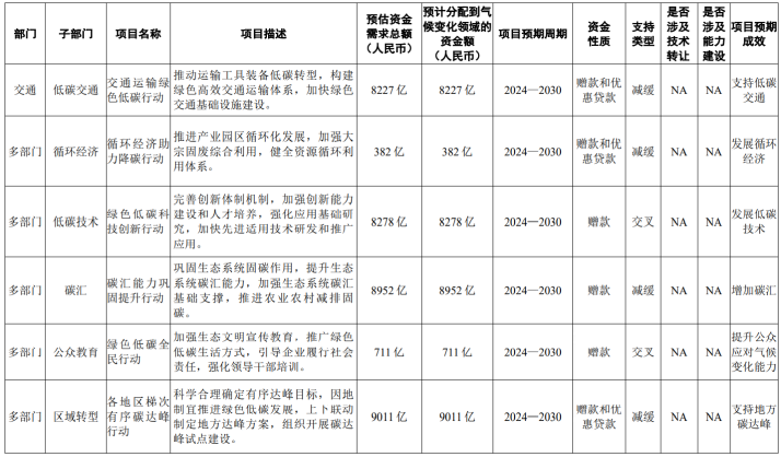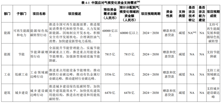 而在披露的中國應(yīng)對氣候變化資金需求支持方面,能源預(yù)估資金需求總額最高,達6萬億元以上。